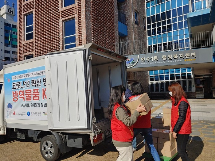 방역물품은 한국가스공사 인천기지본부의 후원금(1,000만원)을 재원으로 지역사회 감염이 현실화되는 상황에서 방역에 취약할 수밖에 없는 독거노인 등 저소득 취약계층의 감염예방을 위해 마련됐다.