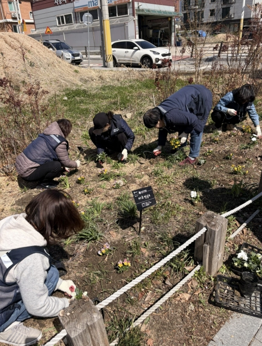 이날 활동에서는 통장협의회 회원과 동 직원 등 50여 명이 참여하여 겨우내 방치됐던 손바닥 정원을 정비하고, 꽃잔디와 팬지 등 다양한 봄꽃을 식재해 정원을 한층 화사하게 가꿨다. 이를 통해 지역 주민들이 아름다운 꽃을 감상하며 봄의 정취를 느끼고 자연과 교감할 수 있는 계기가 될 것으로 기대된다.
