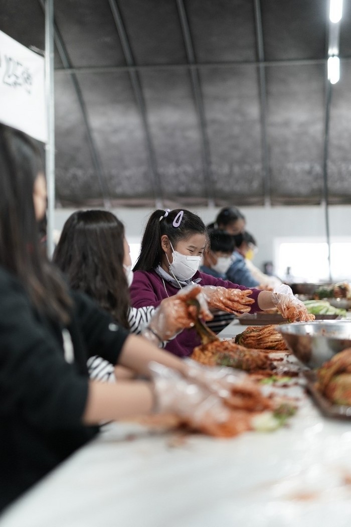 이번 행사는 전교생이 일정한 간격을 두고 삼삼오오 떨어져서 학부모들과 함께 지역의 특산물인 절임 배추를 이용해 김장김치를 만들었다.