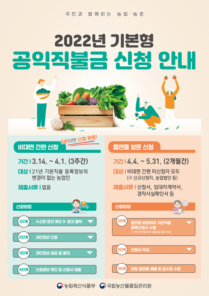 대상자는 2021년 기본직불 등록정보와 2022년 농업경영체 등록정보의 변동이 없는 농업인이다.