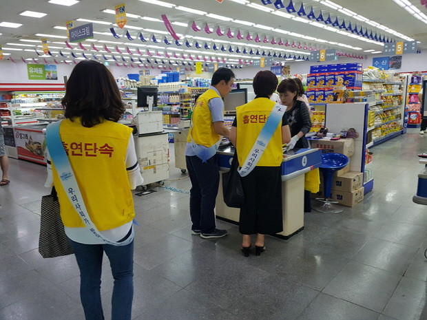 | ▲ 3일 가평군 관계자들이 대형마트에서 흡연 합동단속을 벌이고 있다.<사진제공=가평군청> |