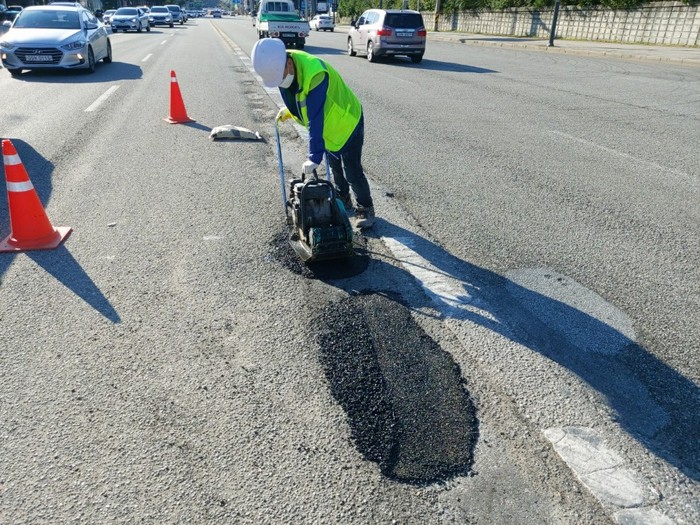| ▲ 기흥구 도로 포트홀에 보수 공사를 하고 있다. (사진=용인시 제공) |
