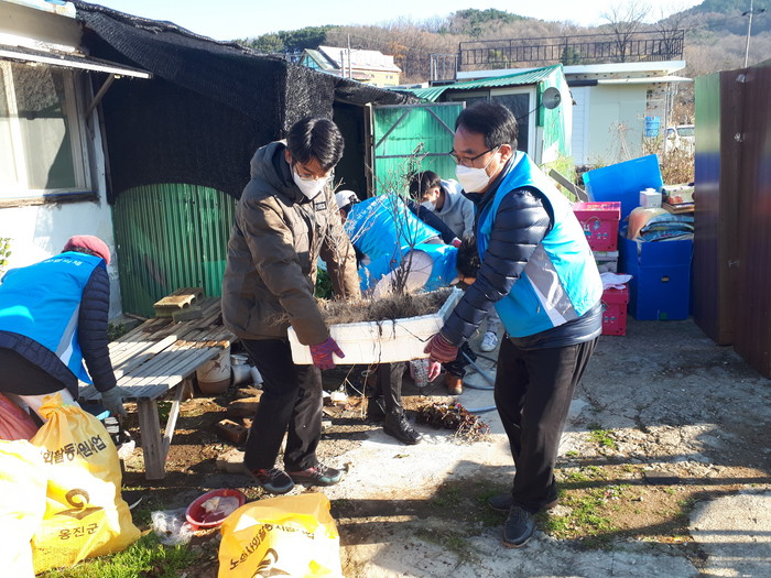 | ▲ 옹진군 북도면 지역사회보장협의체 위원 및 자원봉사자들이 저소득층 가정을 방문해 환경개선 지원 사업을 진행하고 있다. (사진=옹진군 제공) |