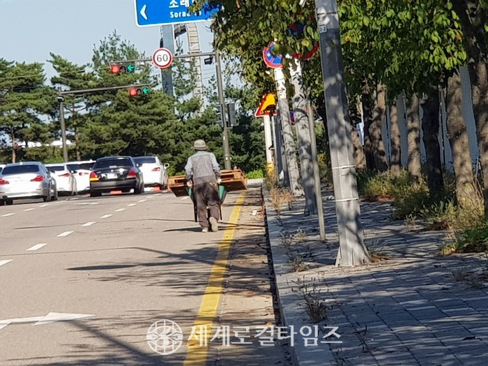 농민 A씨(70세)는 “주말 농사를 하기 위해 수레에 물건을 싣고 지나가야 하는데 보도블럭에는 잡초가 많아 부득이 도로로 이동을 해야 한다”면서 “더구나 2차선 도로 중 1개 차선이 불법 주차 돼 있어 어쩔 수 없이 2차선으로 수레를 끌고 가는데 지나가는 차량이 속도를 내서 사고 날까 불안에 떨면서 이동을 하고 있다”고 말했다.