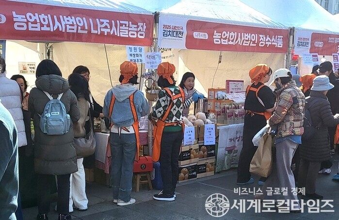 [세계로컬타임즈] 전라남도 나주시(시장 윤병태)는 ‘김치의 날’인 지난 22일 광주 5.18 민주 광장에서 개최된 ‘2025 대한민국 김치대전’에 참가해 나주시 인기 농특산물 홍보 및 판촉 행사를 가졌다고 밝혔다.