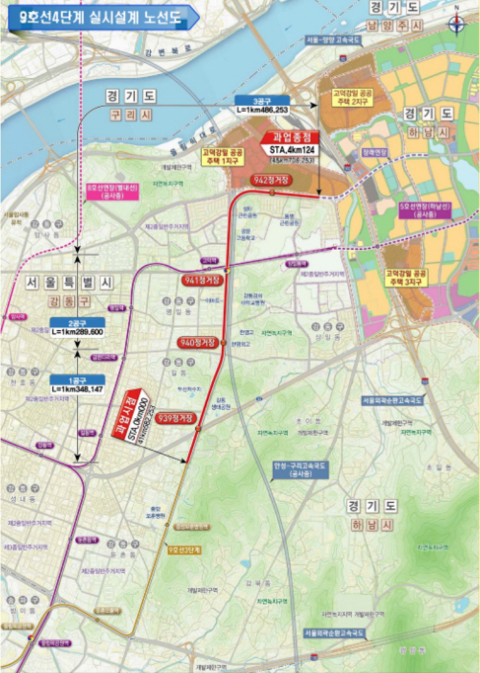 지역 주민들의 요청에 따라 턴키(설계·시공 일괄입찰)로 추진된 9호선 4단계는 지난 2021년 8월에 2공구, 2021년 12월에 1, 3공구의 우선시공분 공사가 착수돼 보도육교 철거, 지장물 이설 협의, 도로 점용허가 등 본공사 착공을 준비하고 있으며, 이번 사업계획 승인을 기점으로 본격적으로 공사가 추진될 예정이다.