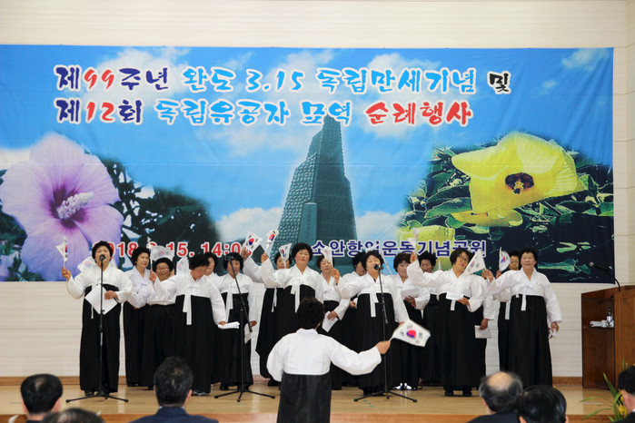 행사는 식전행사로 소안농악단 12군고 공연과 헌화, 분향, 독립선언문 낭독과 기념사, 소안노래교실 회원들이 준비한 독립운동가 합창으로 치러졌다.
