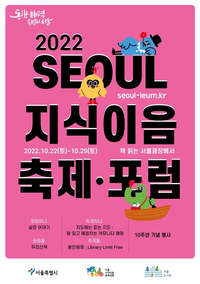 [세계로컬타임즈 이효진 기자] 서울시는 22일부터 29일까지 서울도서관과 서울광장, 축제 공식 누리집을 통해 온·오프라인으로 ‘2022 서울지식이음축제·포럼’을 진행한다.