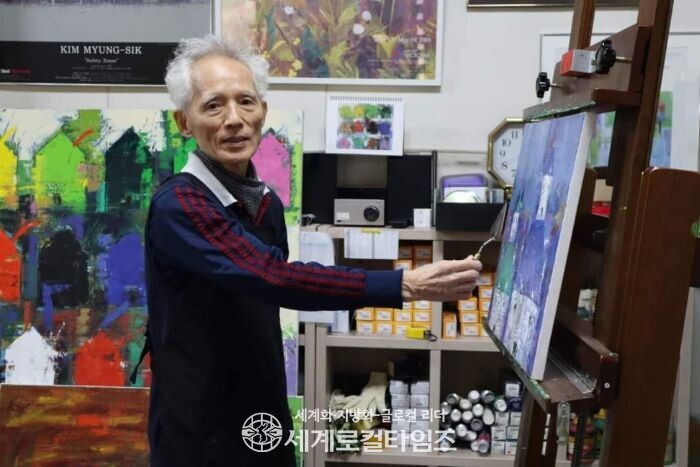 ▲ 전시회 준비가 한창인 김명식 작가 (사진=이지안) |