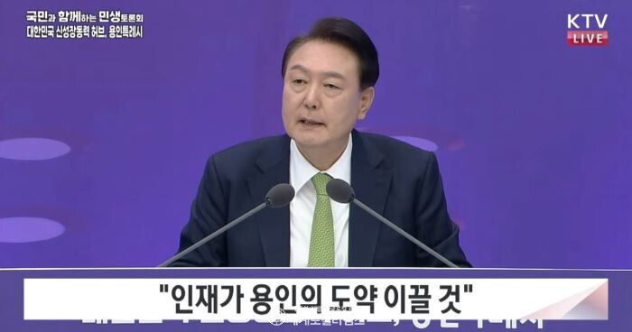 ▲ 윤석열 대통령은 25일 용인시청에서 '대한민국 신성장동력 허브, 용인특례시' 주제로 열린 스물세 번째 국민과 함께 하는 민생토론회에서 발언하고 있다.(사진=ktv방송화면 갈무리) |