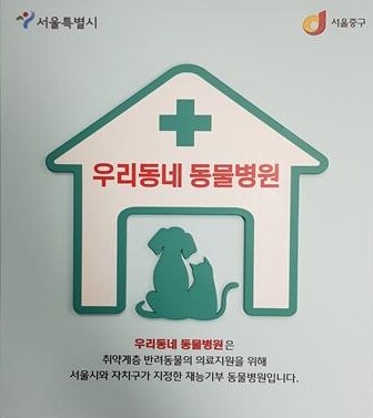 ‘우리동네 동물병원’은 서울시와 자치구가 지정한 재능기부(약 10만 원 상당) 동물병원이며, 서울동물복지지원센터 누리집, 120 다산콜센터를 통해 확인할 수 있다.