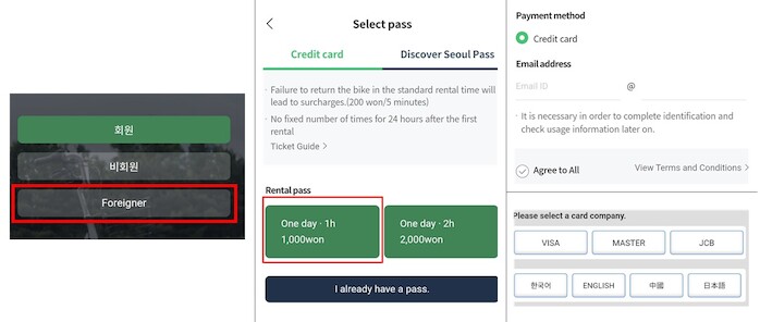 현재 거주 외국인은 내국인과 동일하게 핸드폰 번호로 회원가입 후 따릉이를 이용할 수 있으며, 관광객 등 단기 체류 외국인은 최초화면에서 ‘Foreigner’를 선택해 이용권 구매 후 따릉이를 이용할 수 있으나, 챗봇은 한국어만 가능했었다.