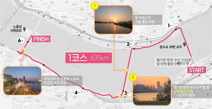 1코스 ‘노을그림길’은 오는 24일 반포한강공원 달빛광장에서 오후 6시 30분에 시작해 150분간 진행 될 예정이다.