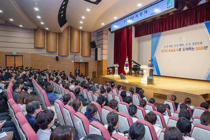 2일 인천 계양구에 따르면 이날 구청 대강당에서 사회단체장, 구 산하 직원 등 400여 명이 참석한 가운데 ‘2020년 시무식’이 열렸다.