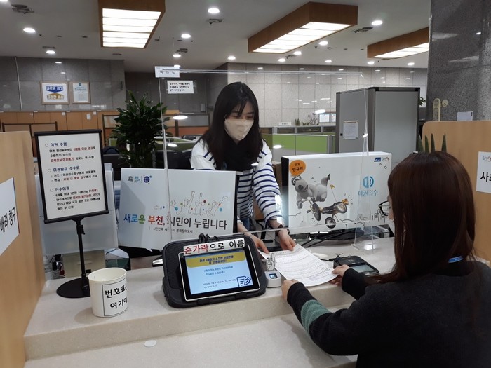 | ▲ 부천시가 투명가림막 설치로 민원인과 창구 공무원과의 감염을 예방하고있다. (사진=부천시 제공) |