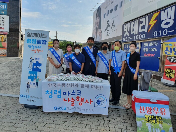 [세계로컬타임즈 이장학 기자] 한국부동산원 안동지사는 17일 지사 인근 거리와 주변상가 등에서 이웃과 함께하는 청렴마스크 배포 행사를 실시했다.