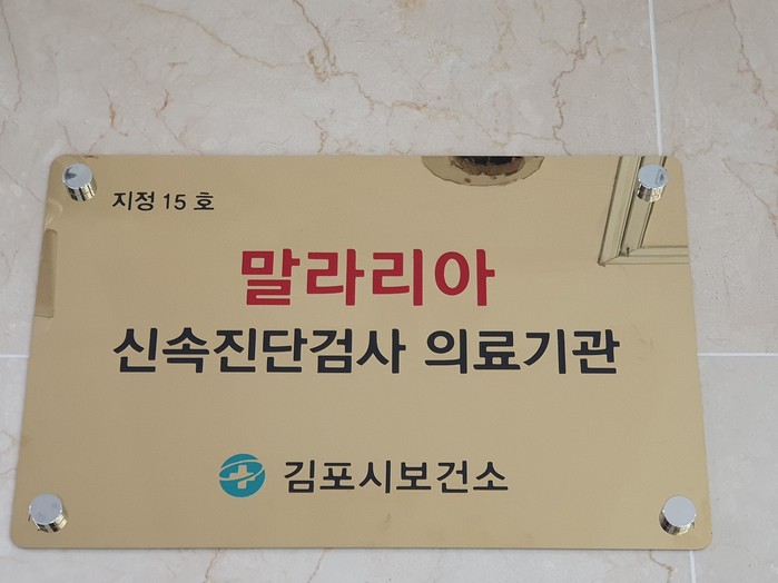 [세계로컬타임즈 심상열 기자] 김포시보건소는 내과·가정의학과 등 16개 병·의원을 말라리아 신속진단검사 의료기관으로 지정해 신속진단 키트 및 현판을 지원했다. 이에 해당 병·의원을 방문하는 민원인은 무료로 말라리아 검사를 받을 수 있다.