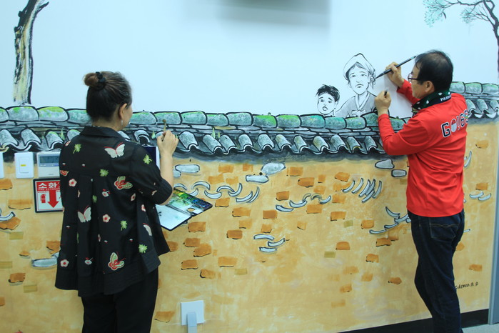 그가 지난 7월 한국을 방문하면서 서부경찰서와 인연이 돼 고향의 향수를 불러일으킬 수 있는 가난한 선비의 고택 담장과 어머니의 향수가 느껴지는 수묵 화법으로 벽화를 그렸다.