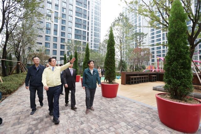 ▲ 최대호 안양시장이 청년주택을 방문, 시설물을 둘러보고 있다.(사진=안양시) |