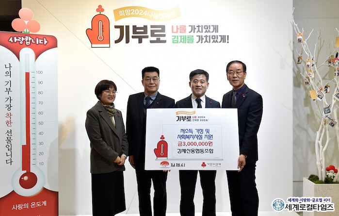정성주 김제시장은 “어려운 이웃들을 위해 따뜻한 나눔 활동을 펼쳐준 김제신용협동조합에 감사드리며 기탁한 성금은 전북사회복지공동모금회를 통해 어려운 취약계층에게 사용하겠다”고 전했다.