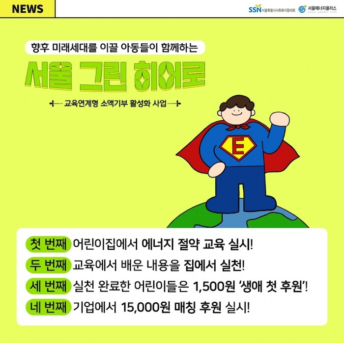 [세계로컬타임즈 이효진 기자] 서울시와 서울시사회복지협의회는 서울에너지플러스에서 교육 연계 소액기부 프로그램인 ‘서울 그린 히어로’를 운영 중이다.