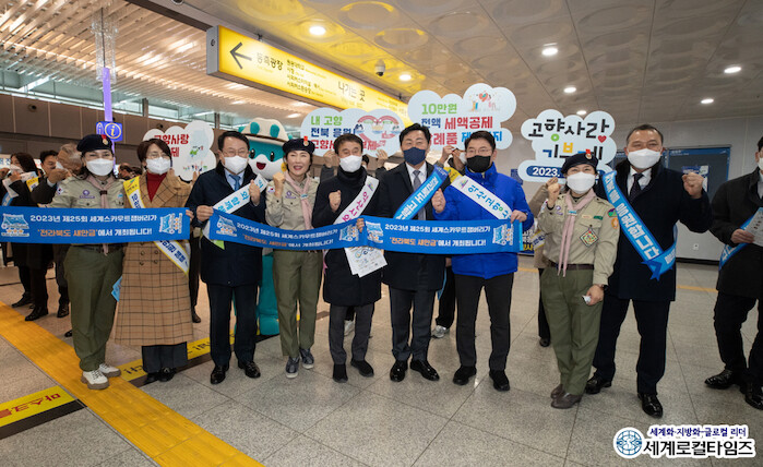 [세계로컬타임즈 조주연 기자] 정헌율 전북 익산시장이 설 연휴를 앞두고 고향을 방문하는 귀성객을 대상으로 익산 고향사랑 기부제 홍보에 나섰다.