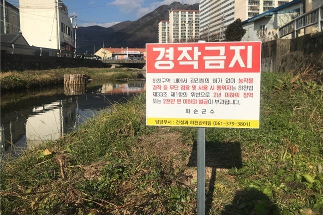 [세계로컬타임즈 강석운 기자] 화순군(군수 구충곤)이 지방하천 62개소와 소하천 400개소에서 불법 경작행위 근절과 하천환경 보존을 위한 일제단속을 벌인다.