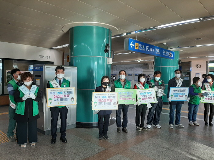 | ▲새마을운동양주시지회는 13일 코로나19 확산방지를 위해 범도민 마스크쓰기 일제 캠페인을 실시했다.(사진=양주시 제공) |