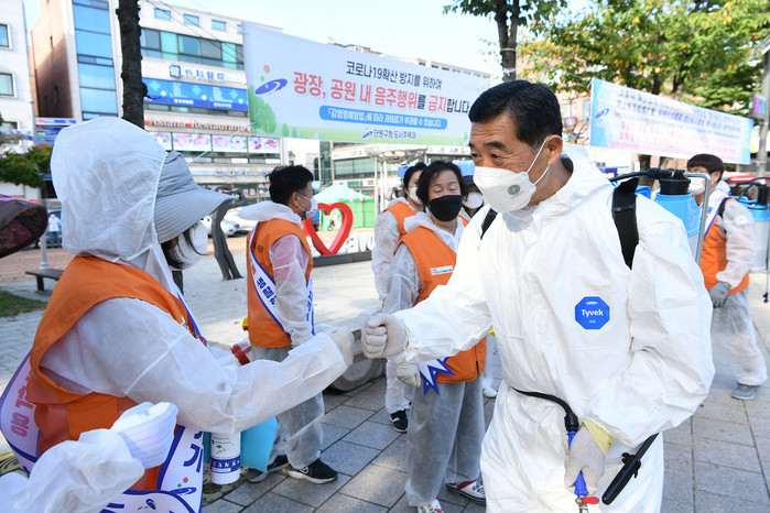 이들은 불특정 다수가 이용하는 공원 벤치 및 공중화장실 등 공공시설물에 대해서는 코로나19 감염 예방을 위한 소독도 함께 실시했다.