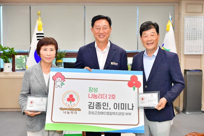 8일 장성군에 따르면 지난 7월25일 김종인 장성군장애인복지관 관장과 아내 이미나 씨가 나눔리더 2호 인증패를 받았다.