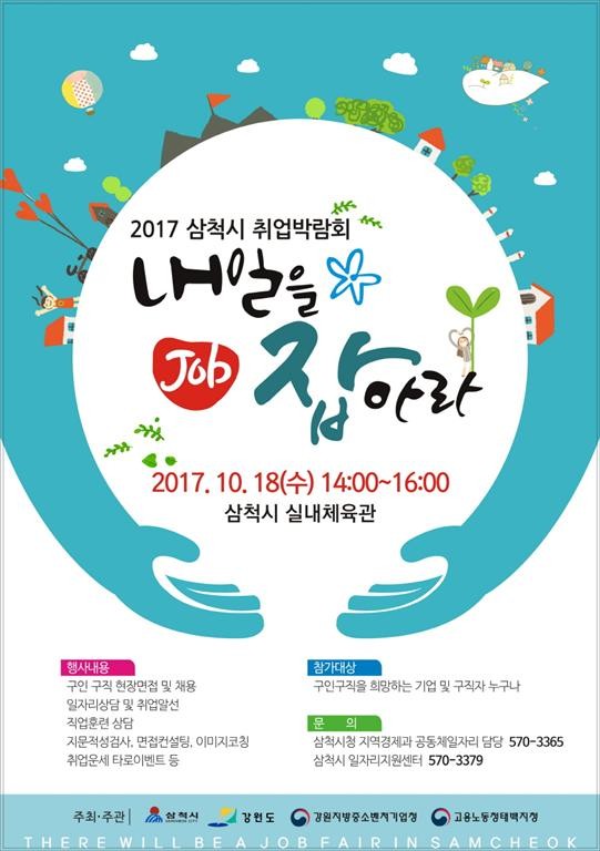 [세계로컬신문 현중순 기자] 강원도 삼척시는 오는 18일 삼척시 실내체육관에서 취업박람회 '내일을 잡(job)아라' 행사를 연다고 13일 밝혔다.