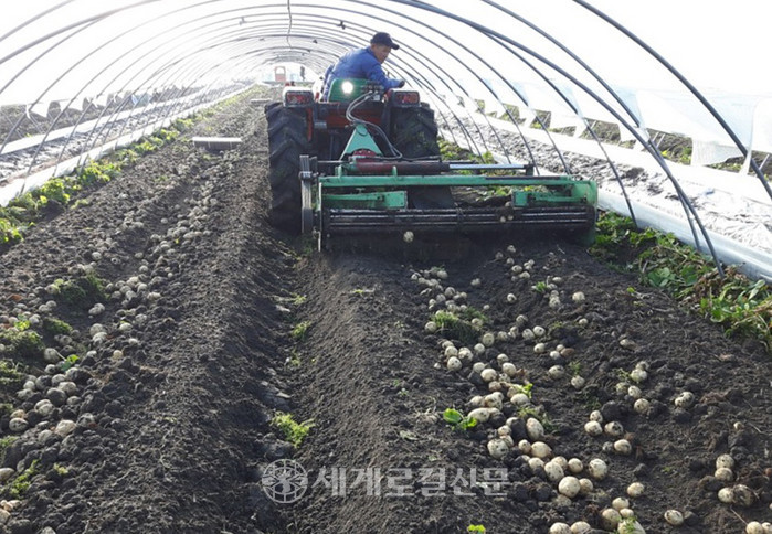 | ▲ 지난달 햇감자를 첫 수확한 전북 김제 광활 시설하우스의 모습. <사진제공=김제시청> |
