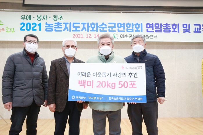 구충곤 화순군수는 “매년 우리 군에 쌀을 기탁해 어려운 이웃에게 나눔을 실천해주셔서 감사하다”며 “지역 발전과 농업 발전을 선도하는 농촌지도자회가 더 큰 역할을 하도록 지원하겠다”고 밝혔다.