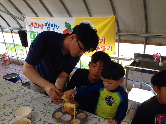 또 참여자들은 이날 직접 수확한 사과를 이용해 사과머핀도 만들었으며 아이들은 캠핑장에 설치된 물놀이 시설에서 물놀이를 즐기며 여름의 무더위를 날렸다.