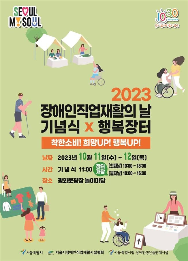 행복장터 첫날(11일) 오전 11시 광화문광장 놀이마당 무대에서는 제2회 서울시 1030 장애인직업재활의 날 기념식이 열린다.