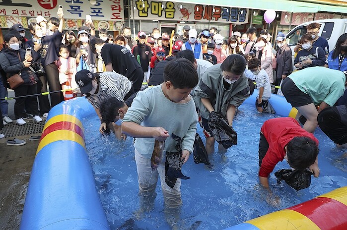 ▲지난해 열린 제10회 월곶 포구 축제 ‘맨손 활어잡이’.(사진=시흥시) |