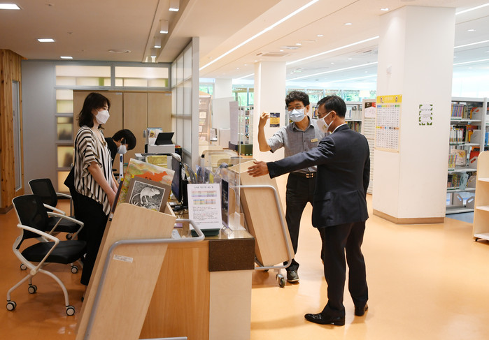 지난달 31일 풍무도서관 방문 점검은 공공도서관의 코로나19 관련 방역지침 준수 독려와 시민들의 의견 수렴을 위해 소통행정의 일환으로 이뤄졌다.
