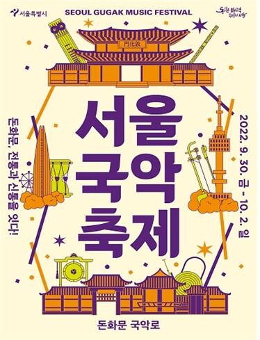 2022 서울국악축제는 30일부터 10월 2일까지 3일간 창덕궁 앞 돈화문로 일대에서 개최된다. ‘원류(原流)와 신류(新流)가 함께 만나는 국악의 길’을 테마로 펼쳐진다. 축제 메인공연은 10월2일 최경만, 왕기철·왕기석 형제, 상자루, 예결밴드 등 국악의 다양한 장르를 보여주는 여러팀의 교차 무대로 구성된다.