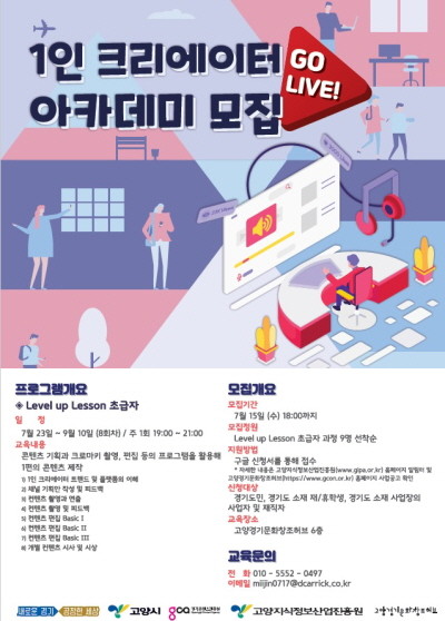 [세계로컬타임즈 김한식 기자] 고양경기문화창조허브는 방송·영상, 뉴미디어 콘텐츠산업 활성화를 위한 ‘고라이브 아카데미 초급자 과정’ 교육을 무료로 진행한다.