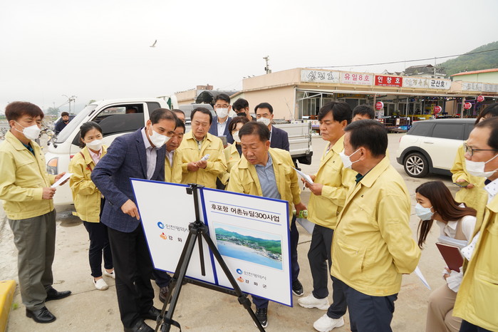또한, 해양수산부의 어촌뉴딜300사업의 대상지로 선정된 화도면 후포항과 삼산면 주민자치타운 공사현장을 방문해 사업추진 사항과 현장을 점검하고 관계자들을 격려했다.