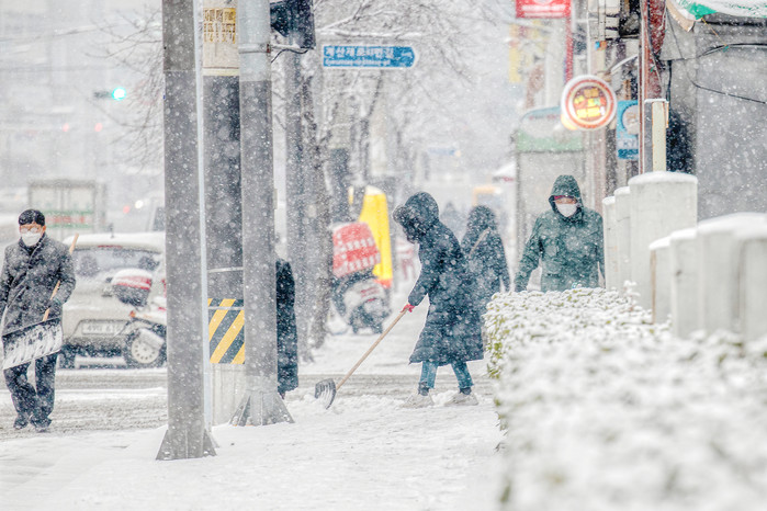 시민의 미끄럼 사고 등을 예방하기 위해 공무원 160여 명을 동원해 인도와 버스정류장 등의 제설작업을 실시했다.