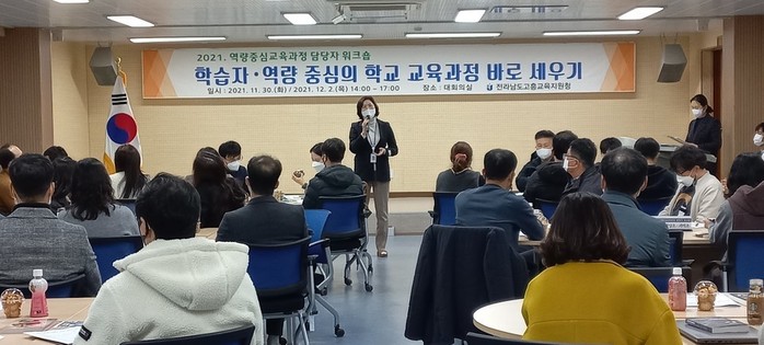[세계로컬타임즈 강석운 기자] 전라남도고흥교육지원청은 11월 30일 관내 초등 교무부장, 연구부장 40명을 대상으로 2021. 역량중심교육과정 담당자 워크숍을 개최했다.