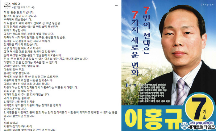 이어 “지금부터는 김제의 정치판에서 이홍규라는 이름은 사라진다”라고 적었다.