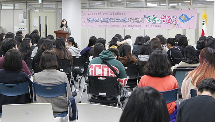 | ▲ 지난 4일 ‘몽실학교 2019 청소년 주도 프로젝트 해오름제’에 참석한 학생들이 이야기를 듣고 있다.(사진=경기도교육청 제공) |