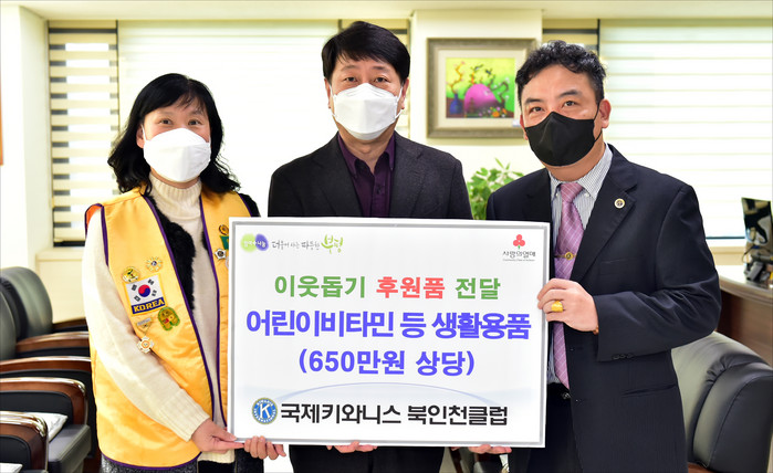 국제키와니스 북인천클럽은 어린이 돕기, 난민구호, 국제민간교류 등 아동을 위한 자원봉사 단체로, 지역사회 내 소외된 이웃을 돕기 위해 후원품을 기탁한다는 뜻을 전했다.