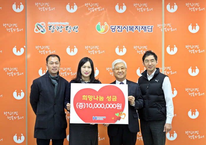 | ▲ 현대제철 당진제철소가 당진시에 이웃돕기 성금 1천만원을 기탁하고 있다. |