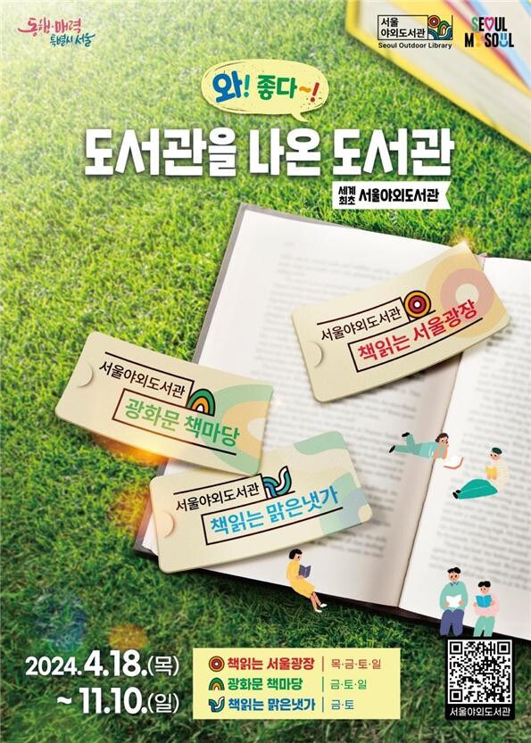 한편, 개장 첫 주 21일에는 ‘서울야외도서관 시즌2’ 개장과 ‘세계 책과 저작권의 날(4월 23일)’을 기념하는 개장 특별행사가 책읽는 서울광장과 광화문 책마당에서 각각 진행된다.