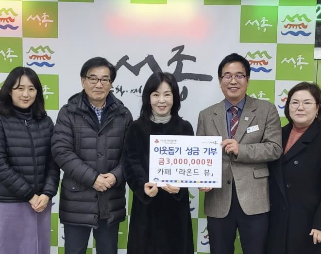홍주표 서종면장은 “해마다 잊지 않고 소중한 성금을 기탁해 주셔서 깊이 감사드린다”며 “앞으로도 운영하시는 카페 라온드뷰가 더욱 발전하길 기원한다”고 감사의 뜻을 전했다.