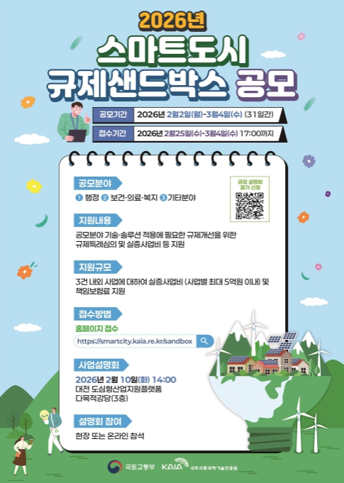 한편, 국토교통부는 2월 10일 오후 2시 대전 도심형산업지원플랫폼에서 이번 공모에 관심있는 기업 및 단체를 대상으로 설명회를 개최할 예정이다.