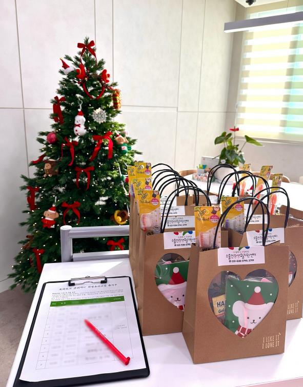 참가자들은 생크림과 딸기, 샤인머스켓을 활용해 각자의 개성을 살린 산타 모양의 크리스마스 케이크를 만들고, 다양한 형태로 자유롭게 장식했다. 케이크를 만드는 과정에서 아이와 보호자가 함께 의견을 나누고 역할을 분담하며 협력해 자연스러운 소통과 교감의 시간을 가졌다.